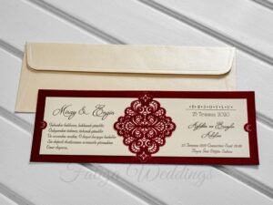 Pour les cérémonies fastueuses, le dépliant à volets ou le format parchemin (qui est d’origine turque, donc orientale) sont à privilégier. Ces faire-part prestigieux rappellent les anciennes invitations impériales et enchantent par leur théâtralité.
